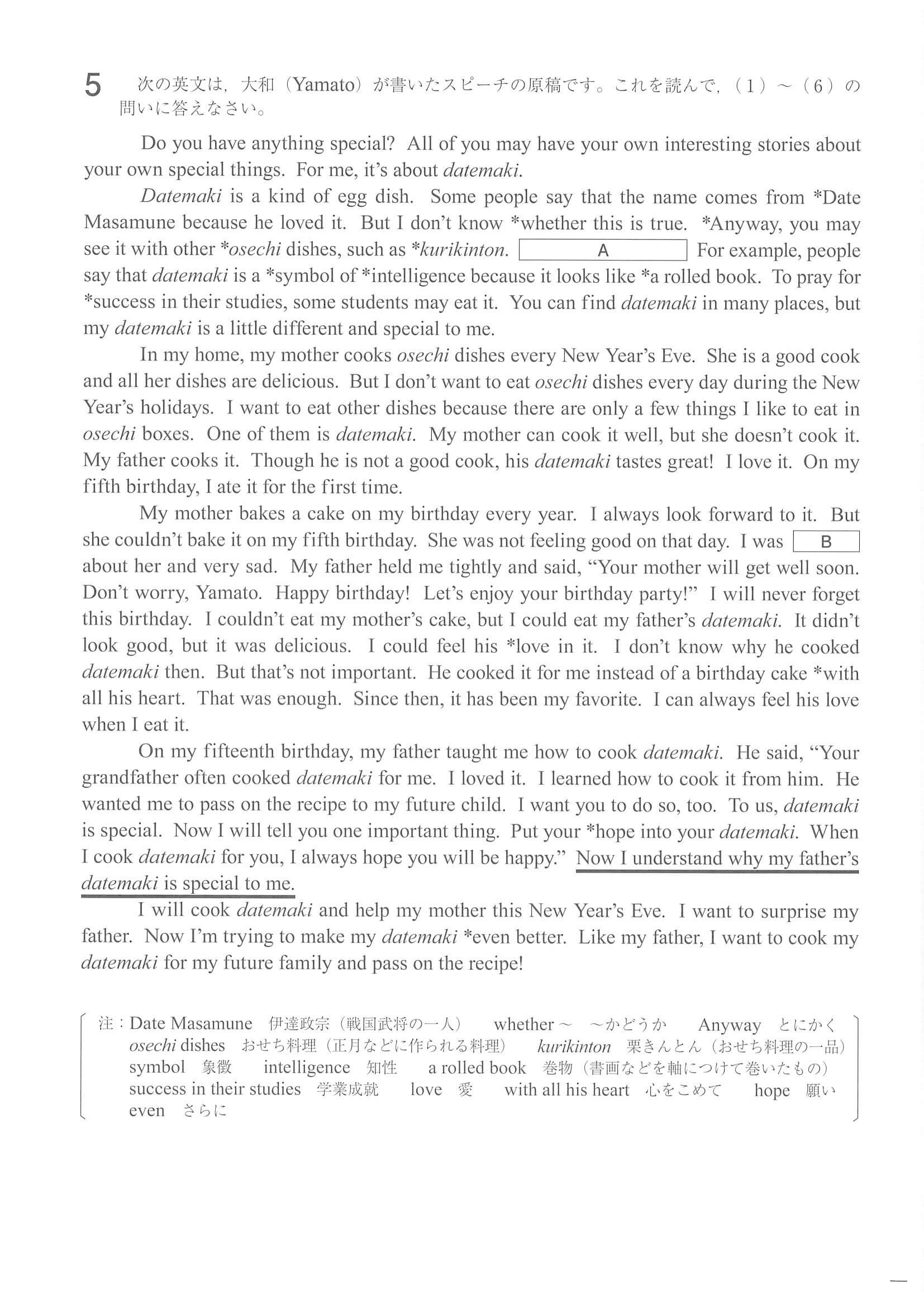 2021年度 福島県公立高校入試[標準問題 英語・問題]6/7