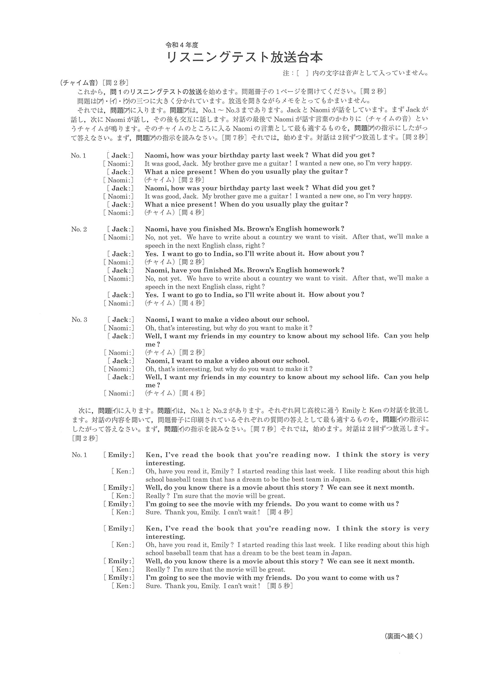 2022年度 神奈川県公立高校入試[標準問題 英語・問題]1/16