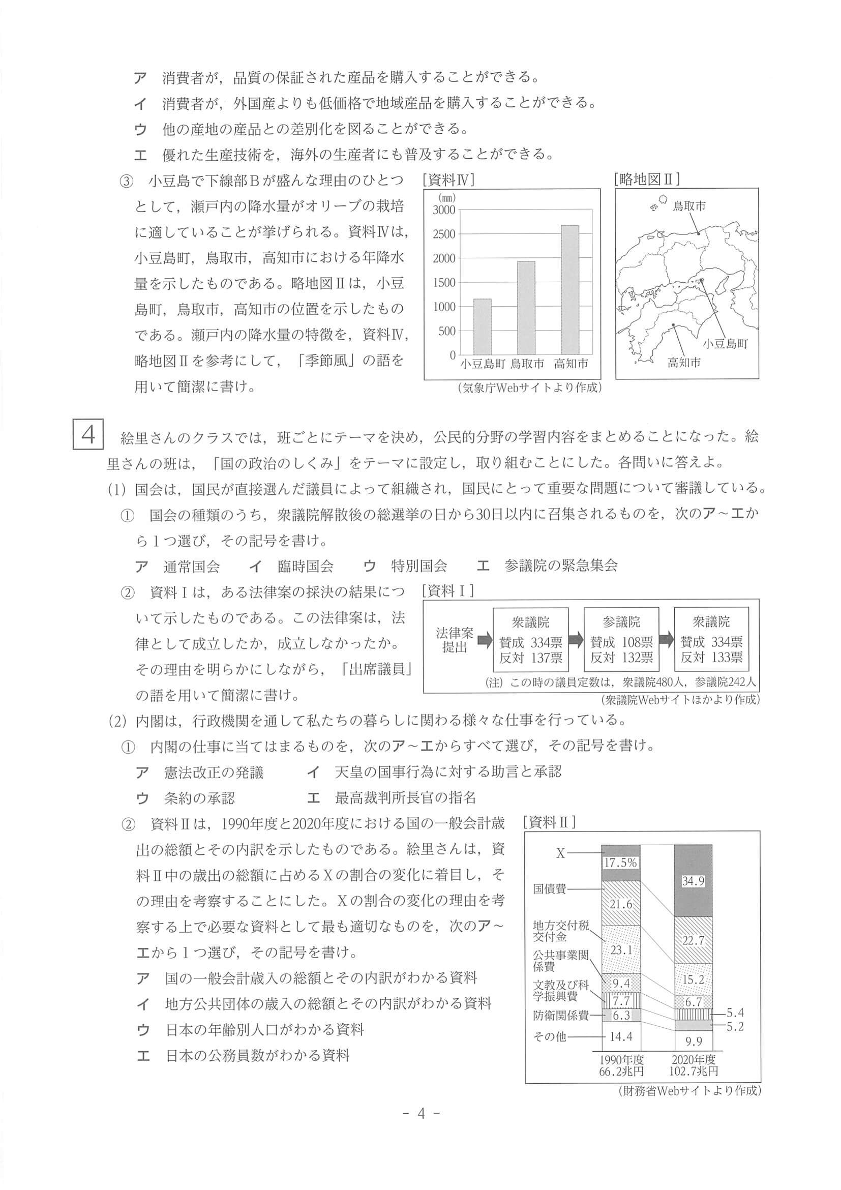 2022年度 奈良県公立高校入試[標準問題 社会・問題]4/6