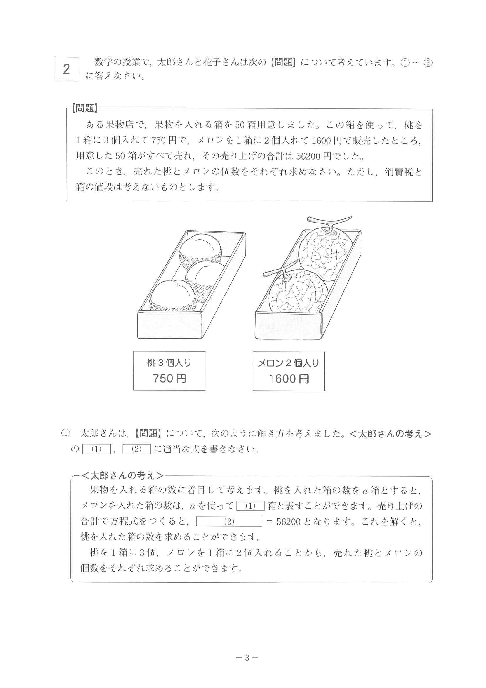 2021年度 岡山県公立高校入試[第1期 数学・問題]3/10