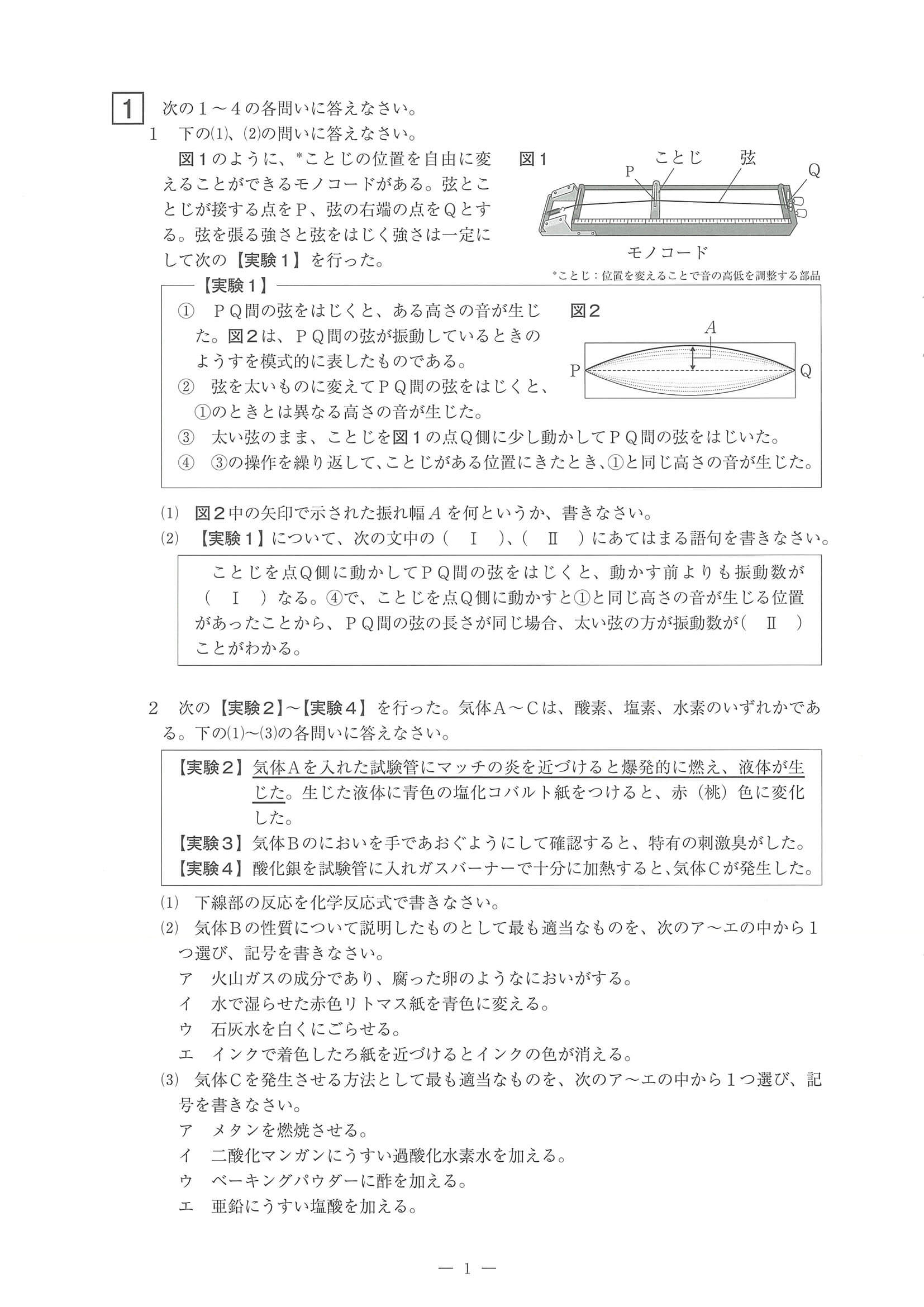 2024年度 佐賀県公立高校入試[一般選抜 理科・問題]1/14