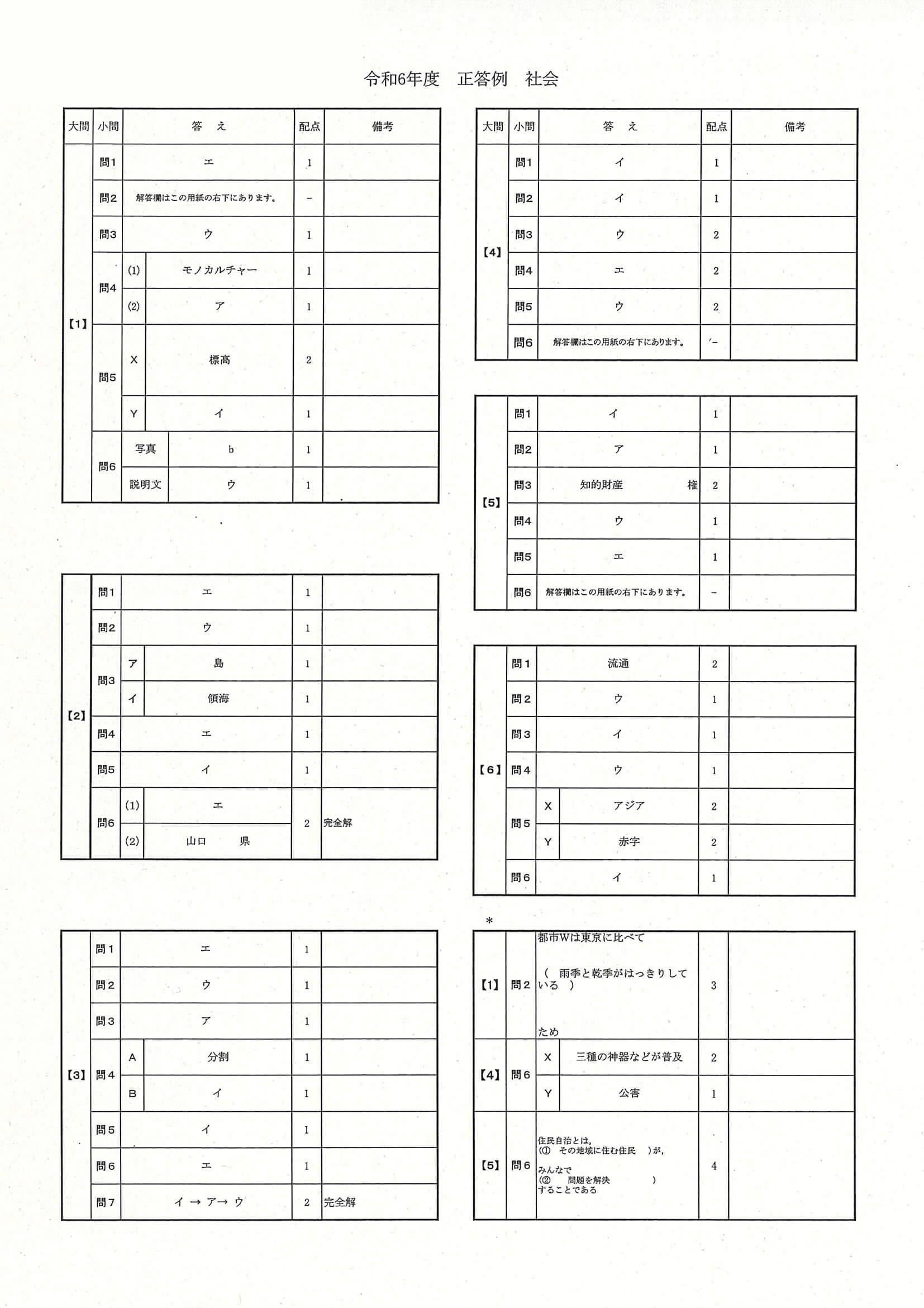 2024年度 沖縄県公立高校入試[標準問題 社会・正答]