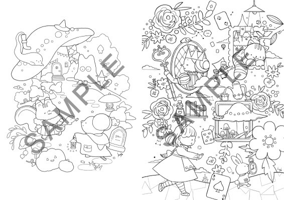 ほんわかとした動物たちや小物、かわいい洋服に身を包んだ女の子、見ているだけで心がほっとするような、ぬくもりあふれる空間を描いた線画を約50点収録しています。