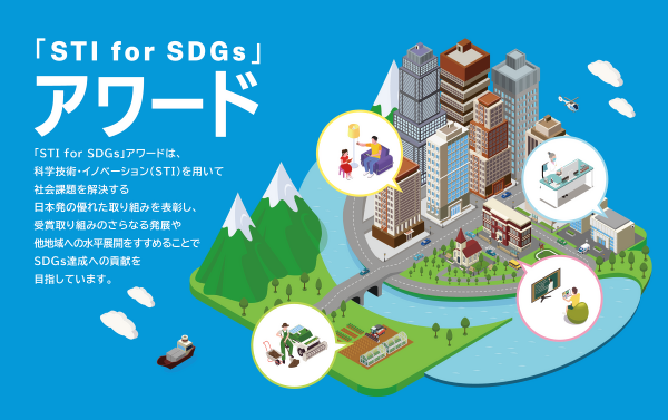 科学技術振興機構(JST)社会技術研究開発センター(RISTEX)は、科学技術・イノベーション(Science, Technology and Innovation : STI)を用いて社会課題を解決する取り組みを対象とした “「STI for SDGs」アワード” の募集を4月1日に開始しました。このアワードは、活用している科学技術の種類やレベルに関わらず独自性や展開性に優れた取り組みを表彰し、それらの取り組みの推進と他での活用を進めることでSDGs達成への貢献を目指しています。
