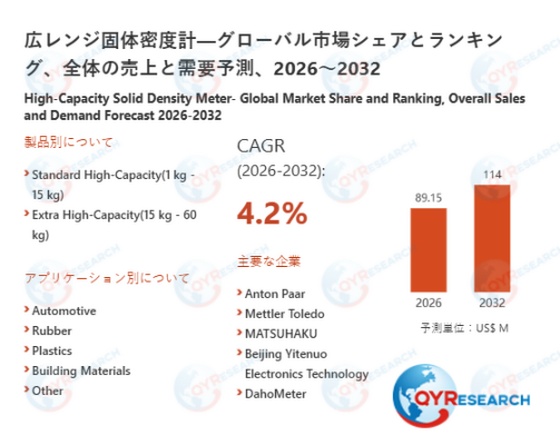 QY Research株式会社(東京都中央区)は、「広レンジ固体密度計―グローバル市場シェアとランキング、全体の売上と需要予測、2026~2032」の最新レポートを発表しました。