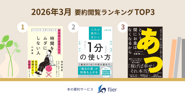 本ランキングは、flierの有料会員を対象に、スマホアプリおよびウェブのアクセス数(紹介書籍の要約閲覧数)を合算し順位付け。集計期間は、2026年2月25日~2026年3月24日です。