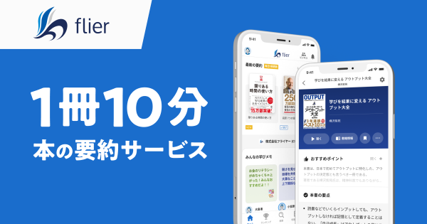 flierは、1冊10分で読める「本の要約サービス」です。ビジネス書の新刊や話題のベストセラー、名著の要約をウェブ、アプリで毎日公開。AIを使った音声版もあります。収録書籍数は4,200冊超、累計会員数は130万人を突破しました(2026年3月現在)。