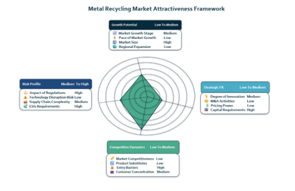 金属リサイクル市場は高度に分散した構造を持ち、多くの企業が地域および地方レベルで活動している。この分布は、スクラップの回収、処理、供給が分散型であることに起因しており、大企業と中小事業者が共存するエコシステムを形成している。