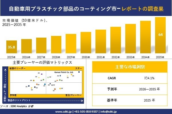 自動車用プラスチック部品のコーティングに関する詳細な市場調査報告書は以下のリンクから入手できます: https://www.sdki.jp/reports/automotive-plastic-parts-coatings-market/590642171