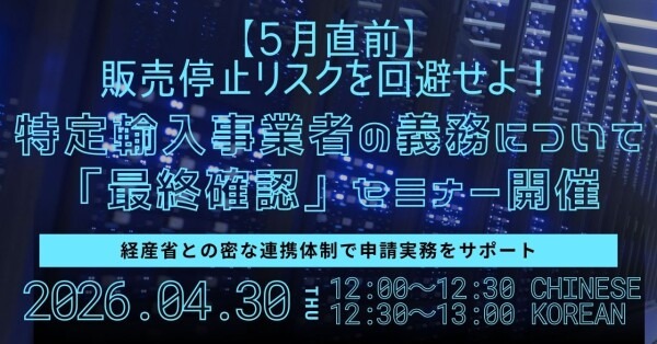 「海外メーカーへの説明が追いつかない」「書類の不備で審査が止まっている」という日本国内の担当者様、および海外事業者の皆様に向け、4月30日に4月度最後となる実務セミナーを開催いたします。
