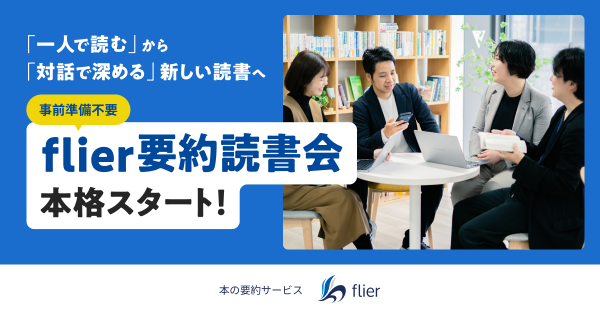また、flierゴールド会員・flier book labo会員、および法人個人会員を対象に、プライベートな時間にライトに楽しめる「flierゆる要約読書会」も定期開催いたします。「flier要約読書会」よりもさらに広く、ゆるやかに本を語り合える仲間と出会いませんか。