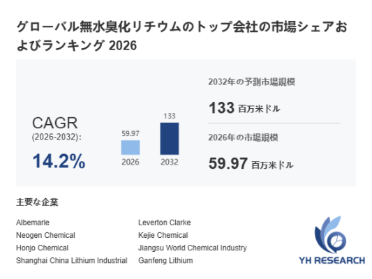本記事は、YH Researchが発行したレポート「グローバル無水臭化リチウムのトップ会社の市場シェアおよびランキング 2026」 を紹介しています。
