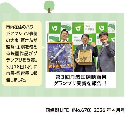 監督・主演のパワー系アクション俳優・大東賢は、受賞報告のため四條畷市役所を訪れ、市長を表敬訪問した。市長は、地域から世界へ広がる取り組みとして評価した。