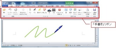 ・Word 2010の手書き用ツールをあつめた「手書き」リボンを用意