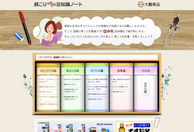 大鵬薬品工業株式会社(本社:東京 社長:宇佐美 通)は、ホームページ疾患情報サイトにおいて「肩こりこりごり豆知識ノート」食事編を公開いたしました。