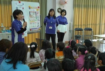 この度、奈良県にて初めての『ひとみ元気教室』を2011年12月12日に奈良市立二名幼稚園で開催いたしました。今回は、3~4歳児46人を対象に「視育(目の大切さを伝える授業)~ビジョントレーニング~」という授業を実施。わかさ生活従業員が講師となり、目に良い3つの生活習慣(好き嫌いなく食べること、早く寝ること、お外遊びをすること)の紹介、目の錯覚クイズ・タッチパネル、正しい姿勢、正しいお箸の持ち方を学び、その実践として“あずきつかみ”を行い、ゲーム感覚で楽しく目について学んでいただきました。