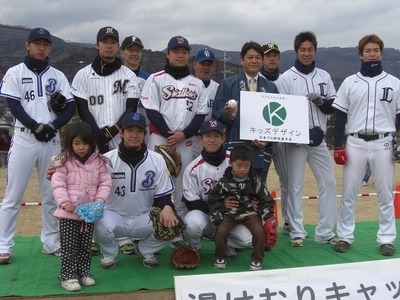 社団法人 日本プロ野球選手会(理事長:井端弘和 中日)は、1月15日(日)神奈川県湯河原町の湯河原海浜公園にて、「ゆけむりキャッチボールIN湯河原」を開催。キャッチボールを楽しんだ300人の親子とともに、このオフ、選手会が、プロ野球選手700名で取り組む「キッズデザイン」普及のメッセージを発信しました。