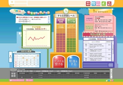 加えて、「日々の学習状況」、「クリアユニット数の推移」、「先生からのメッセージ」、「自分のランキング(学習時間・クリアユニット数)」などを一覧できるように、ログイン後のトップページを一新いたしました。