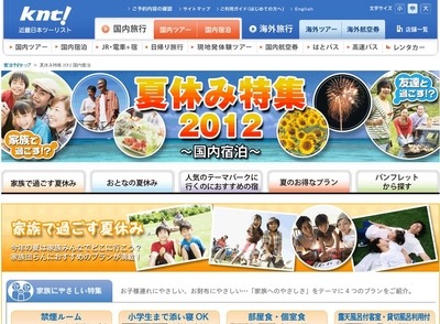 近畿日本ツーリスト株式会社(以下、KNT)は、夏休み時期のインターネット専用国内旅行商品の宿泊プランと交通がセットになったパッケージ商品の販売を開始しますのでお知らせします。http://yado.knt.co.jp/sp/summerholiday/