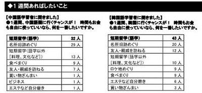 ▲語学教育のアルクが配信しているメールマガジンということもあり、中国語学習者、韓国語学習者ともに「短期留学(語学)」が1位に。韓国語学習者には、「ロケ地めぐり」や「エステなど自分磨き」も人気でした。