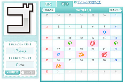 1日に4回以上テストをおこなうと、アイコンが「はなまる」になります。