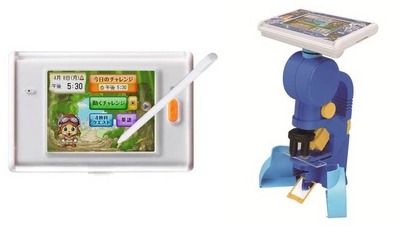 この新「ポケットチャレンジ」では、これまで好評だった学習スケジュール管理機能、デジカメ機能や、フルカラー&タッチパネル機能搭載の液晶画面を活用した学習機能のほかに、講座の他の立体教具(顕微鏡や地球儀など)との連動性を強める改訂も加えました。