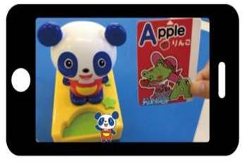 パブーの頭を押すと、「“りんご”はどれかな」「“E!E for Egg!”をさがしてね」などと、日本語や英語で出題してくれ、該当するカードを本体に差し込むと、パブーが正解・不正解の判定をしてくれます。