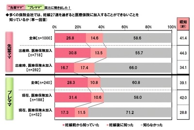 ■ 「妊娠後27週を過ぎると医療保険に入りづらい」 先輩ママもプレママも6割が知らない