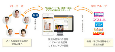 株式会社学研ホールディングス(本社:東京都品川区、社長:宮原博昭、以下「学研」)とウェルスタイル株式会社(本社:東京都渋谷区、社長:谷生芳彦、以下「ウェルスタイル」)は、ウェルスタイルが運用する家族向けSNS『wellnote(ウェルノート)』を活用し、三世代でこどもの学習に取り組む新しいライフスタイルをご家庭に提案していくことを目的とした業務提携に合意しました。2013年6月上旬より、学研が保有する教育コンテンツを『wellnote(ウェルノート)』へ提供し、祖父母も一緒に孫の学びをサポートできる家族向けの新しい学習サポートツールの提供を開始します。