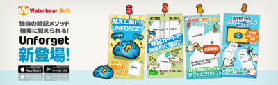 Waterbear Soft Japan Incから『Unforget』という独自のツールで「無駄なく効果的に、しかも確実に」暗記することができるアプリが発売された。知っている単語は上に、知らないのは下にするだけで単語を覚えられるいう仕組。「英単語」「ことわざ」「歴史年号」「漢字」などさまざまなコンテンツがあり、しかも無料。