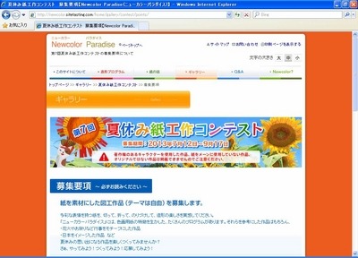 工作用色画用紙「ニューカラーRシリーズ」を全国販売するリンテック(本社:東京都板橋区 代表取締役社長:大内昭彦)は、色画用紙を使った造形プログラムを豊富に紹介している造形教育・創造活動支援サイト「ニューカラーパラダイス」において、この7月12日(金)から9月17日(火)まで、7回目となる「夏休み紙工作コンテスト」を開催します。