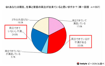 1.仕事と家庭を両立できている主婦は半数を超えるが、そのうち65.8%が不満を持っている。