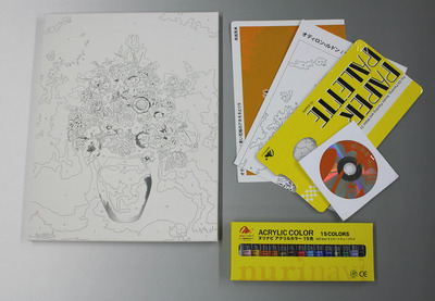 内容物 : F6キャンバス、絵筆、アクリル絵の具、ペーパーパレット、完成イメージ、DVD