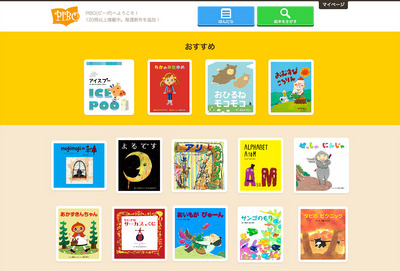 絵本の読み聞かせのためのウェブサービスです。月額315円で子供たちからも人気のプロ作家71名の絵本が読み放題となります。現在128作品を掲載中*で、毎週新作を追加**し、2014年度内に400作品の掲載を目指しています。