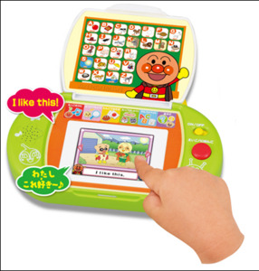 カラー液晶のタッチスクリーンを搭載し、目と耳とタッチで直感的に英語特有のリズムや音に慣れたり、アンパンマンの仲間達と一緒に‘あいさつ’や英会話、ABCの読み書きを学ぶことができます。