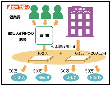 給与天引による従業員の毎月の募金額は、「阪急阪神」にちなんで、一口89(はんきゅう)円・上限84(はんしん)口(現金振込の場合は一口年額1,000円)に設定し、従業員の自発的な社会貢献活動への参加と地域社会や市民活動への理解促進を図っています。