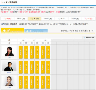 上記時間内で30分おきにレッスン(1レッスン=25分)は開講され、講師や時間帯を自由に選んで予約、受講することができます。レッスンの予約は15分前まで可能です。