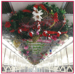4両編成の内、中央2両の天井に装飾します。