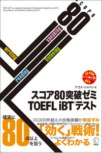 80点を取るために必要な知識、効率よく「スコアをとる」ための考え方やテクニック、効率的な学習方法をコンパクトにまとめています。問題数をこなすだけでは、スコアが上がらないと言われているTOEFL iBT(R)の攻略方法が具体的にわかります。