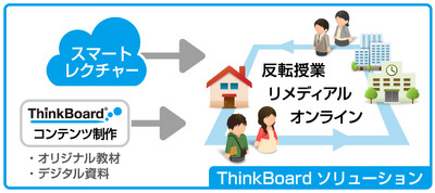先生一人の取り組みから科目・学年・学校全体の取り組みへ、そして複数のキャンパスや校舎間でも共有できる学習プラットフォーム作りまで、柔軟なフローと優れたコストパフォーマンスで「ThinkBoardソリューション」は対応します。平成26年度は、高校・大学・企業を中心に200の導入を目指します。