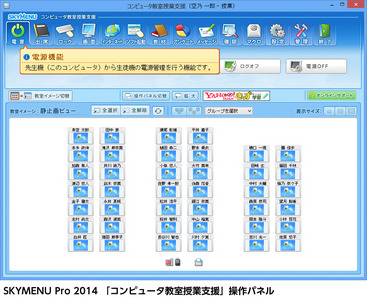 「SKYMENU Pro」は、コンピュータ教室での授業や運用をトータルで支援するソフトウェアです。「SKYMENU Pro 2014」では、1人1台の環境であるコンピュータ教室の特性を生かし、子どもたちが何度も試行錯誤しながら自分の考えや調べたことをまとめる活動を支える機能を搭載しました。