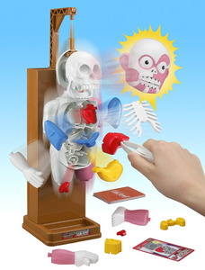 引いたカードの指示に従って、人体模型の内臓・骨・手足パーツを戻していくゲームです。パーツをうまく入れられないと、人体模型の顔が飛び出し、全てのパーツも派手に飛び出すスリル満点のパーティーゲームです。
