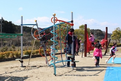 子どもたちが公園整備に参加したことを確認すること、新しい遊具を理解することを目的に実施されました。ゲームやアクティビティを通して、遊具や防災設備の目的や利用方法を考え、理解しました。