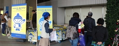 イベント当日、スタッフは本プロジェクトのマスコット「マケルナくん」とお揃いの青いニット帽をかぶり、オフィシャルパートナーである株式会社ヤクルト本社の方々と協力しながら、ご来場いただいた皆様への公式リーフレットやウェットティッシュ・のど飴などの配布を通じて、ウイルス感染防止の啓発活動を行いました。