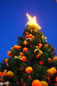 ◆松山産のみかんを使い地元小中学生が手作りした『みかんツリー』