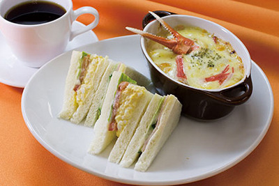 ミックスサンドとカニのグラタン コーヒーor紅茶付 650円(税込)