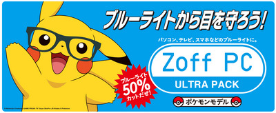 この度、メガネショップ「Zoff(ゾフ)」を運営する株式会社インターメスティック(本社:東京都港区)は、株式会社ポケモンとの商品ライセンス契約に基づき、ポケットモンスターをモチーフとした、子ども向けアイケア商品の第2弾、ブルーライトを50%カットする「Zoff PC ULTRA PACK(ゾフ・ピーシー・ウルトラ・パック)ポケモンモデル」3,500円(税別)全5種類を、2014年12月13日(土)全国のZoff店舗及びオンラインストアにて発売いたします。