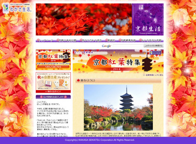 その「ほっこり京都生活」のホームページ内に開設した「京都紅葉特集2014」。