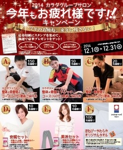 2014年も残すところ1ヶ月。皆さんにとってどんな1年でしたか?カラダファクトリーとファミリーサロンでは、1年間の感謝の気持ちと、「今年の疲れは今年のうちに取り除こう!」という想いから、『2014年“今年もお疲れ様です”キャンペーン』を実施します。