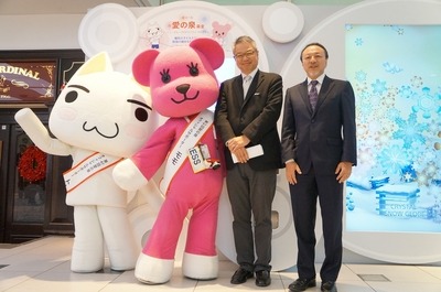 初日の12月1日(月)には、特定非営利活動法人 国連UNHCR協会 事務局長 檜森 隆伸氏と、今年の「愛の泉」のオフィシャルサポーターに就任した、ゲームソフト「どこでもいっしょ」シリーズ(*2)のキャラクター “トロ”とPostPet(*3)の“モモ”をゲストに迎え、オープニングセレモニーを開催いたしました。